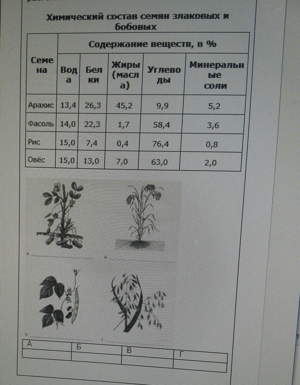 Выше приведены изображения указанных в таблице растений. Подпишите под каждым изображением название соответствующего растения.