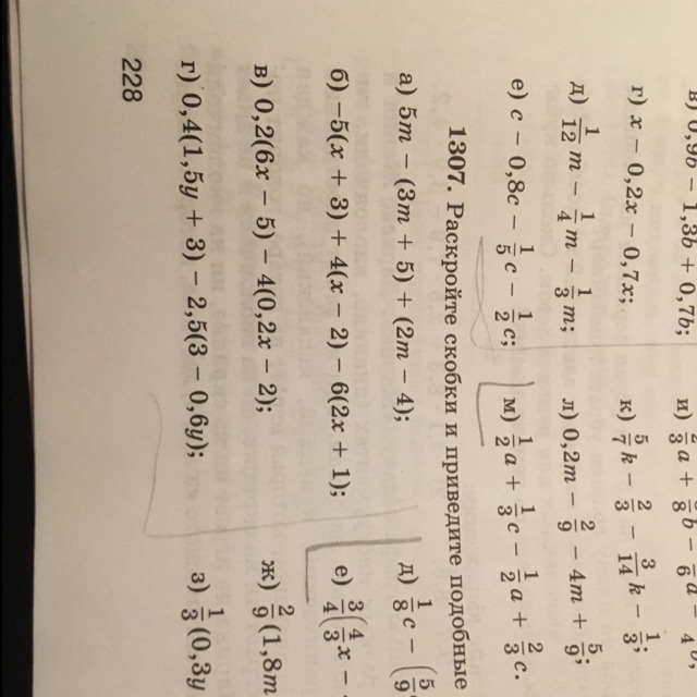 Раскройте скобки приведите подобные слагаемые.(а-г) 1307