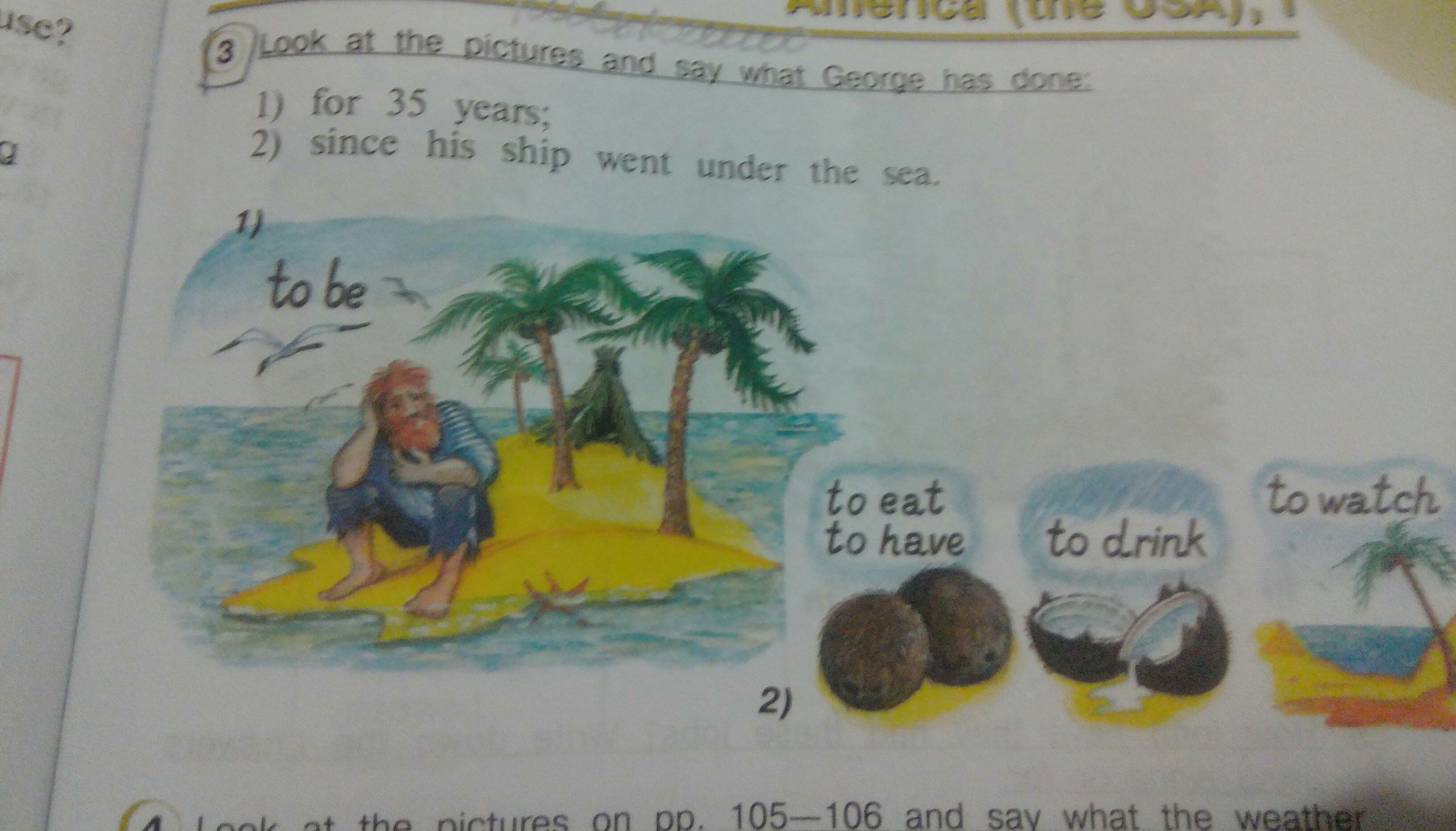2) George has eaten coconuts since his ship went under the water. George has drunk coconut juice since his shop went under the water. George has watched the island since his ship went under the water.