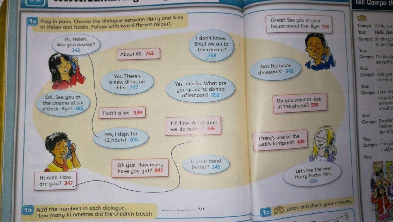 Нужно провести линии от одной фразы к другой (по-моему, они должны быть разных цветов), тем самым составив диалог между людьми.