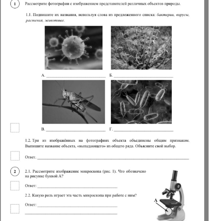 1.1 А. Вирусы; Б. Растения; В. Животные; Г. Бактерии.