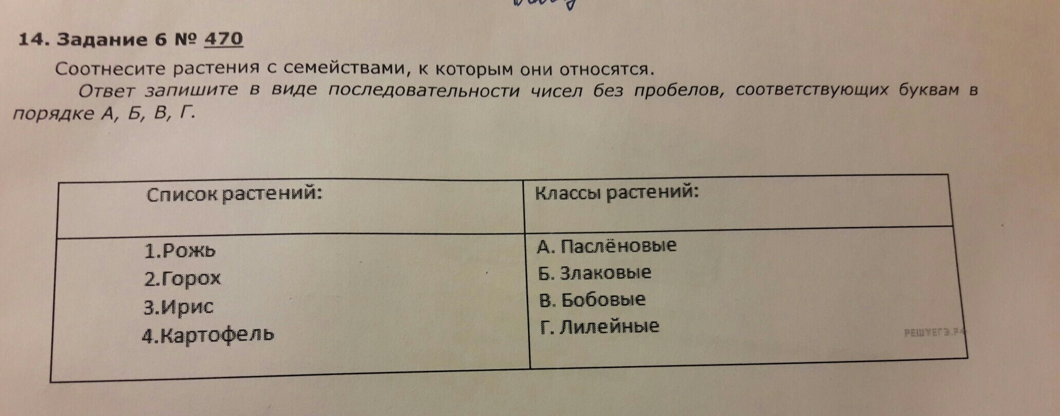 Ответы Рожь-злаковые Горох-Бобовые Ирис-Лилейные Картофель-Пасленовые