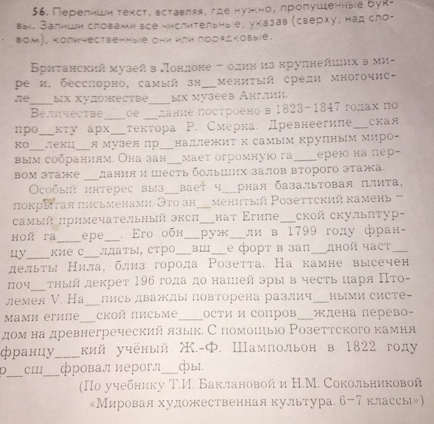 Перепиши текст вставляя где это нужно пропущенные буквы. Запиши словами все числительные.