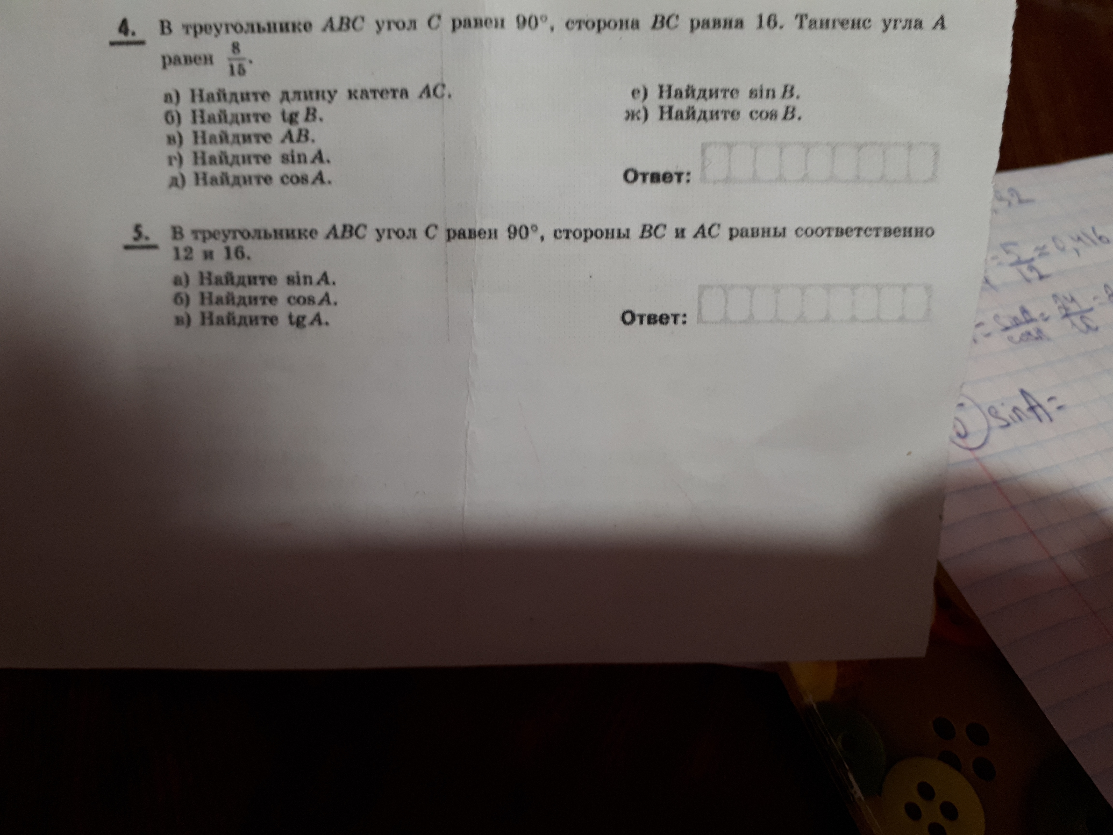 ВС= 12; АС = 16; SinA=?CosA=?tgA=?