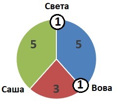 2) 8 - 5 = 3 чел между Вовой и Сашей - ОТВЕТ