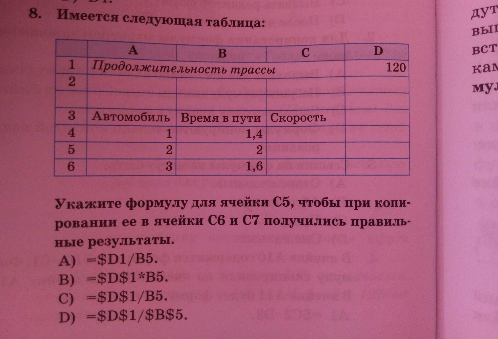 Чтобы получить скорость, нужно пройденное расстояние разделить на время Расстояние находится в D1 и является постоянной величиной, поэтому в адресе не должно меняться ни D, ни 1 и надо указать $D$1.