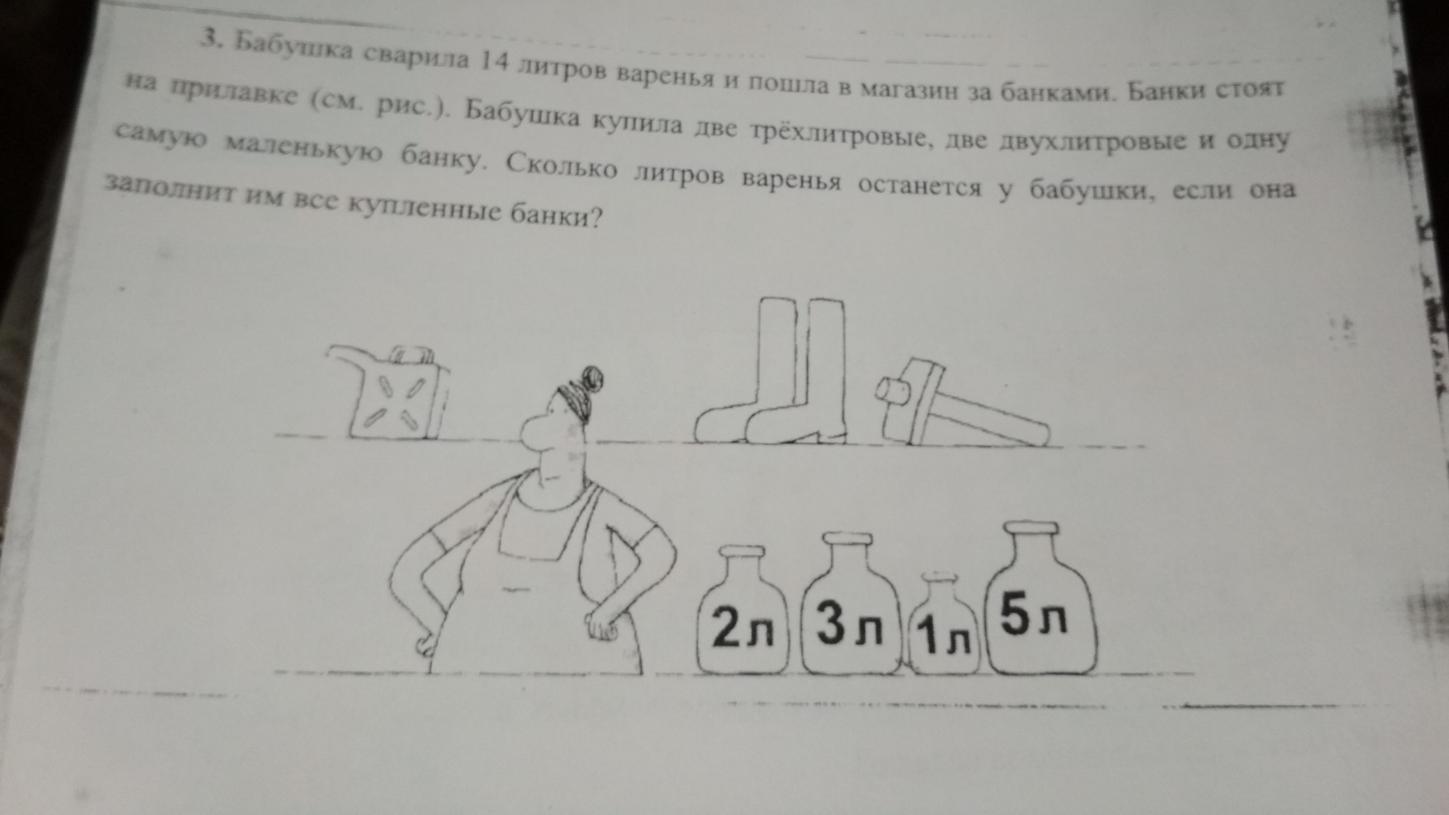 Отвeт: у бабушки останeтся 7 л варeнья.