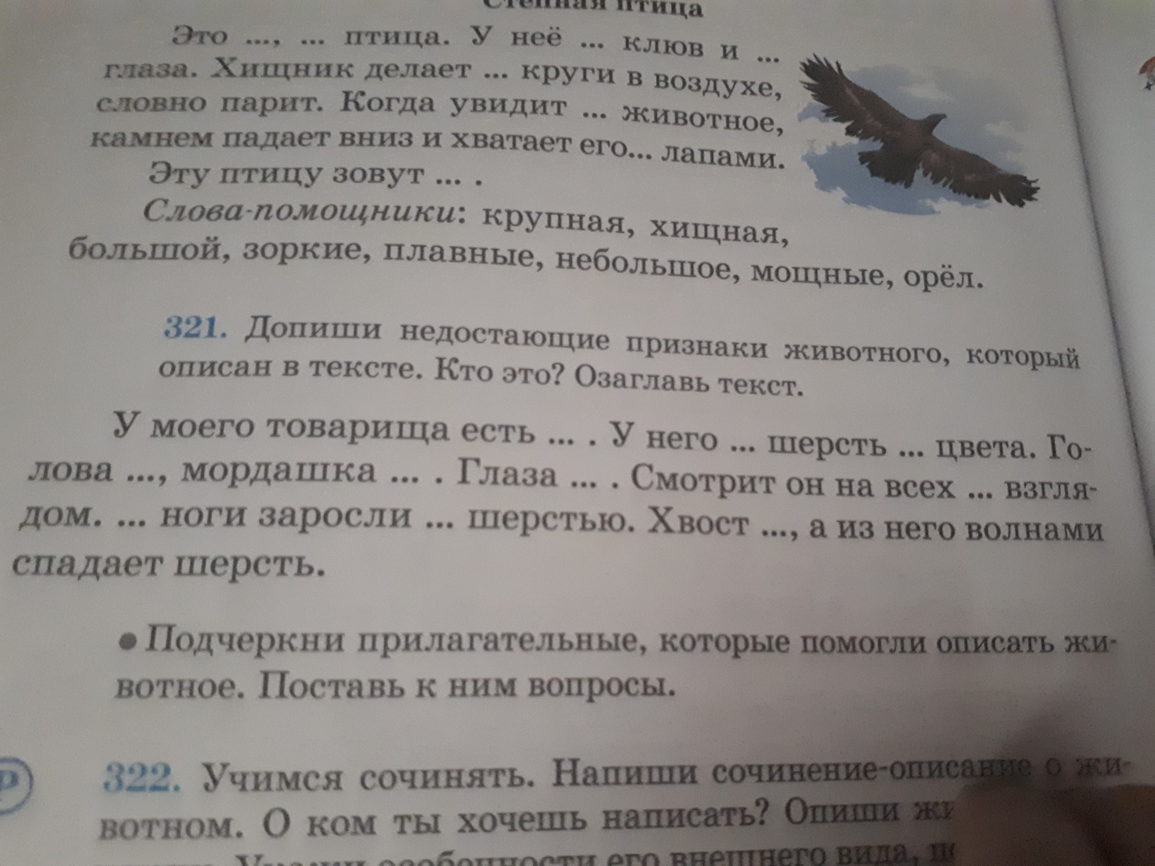 Допиши недостающие признаки животного которые описаны в тексте кто это? Озаглавь текст