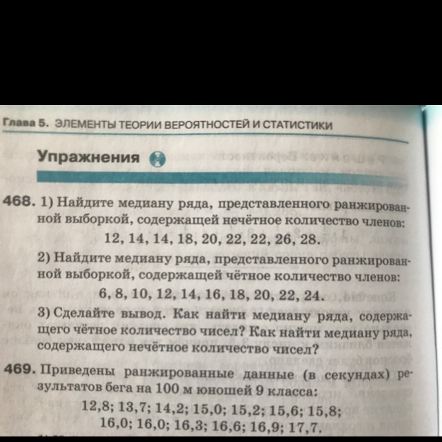 В случае нечётного количества чисел ряда медиана - это число, которое стоит посередине ряда.