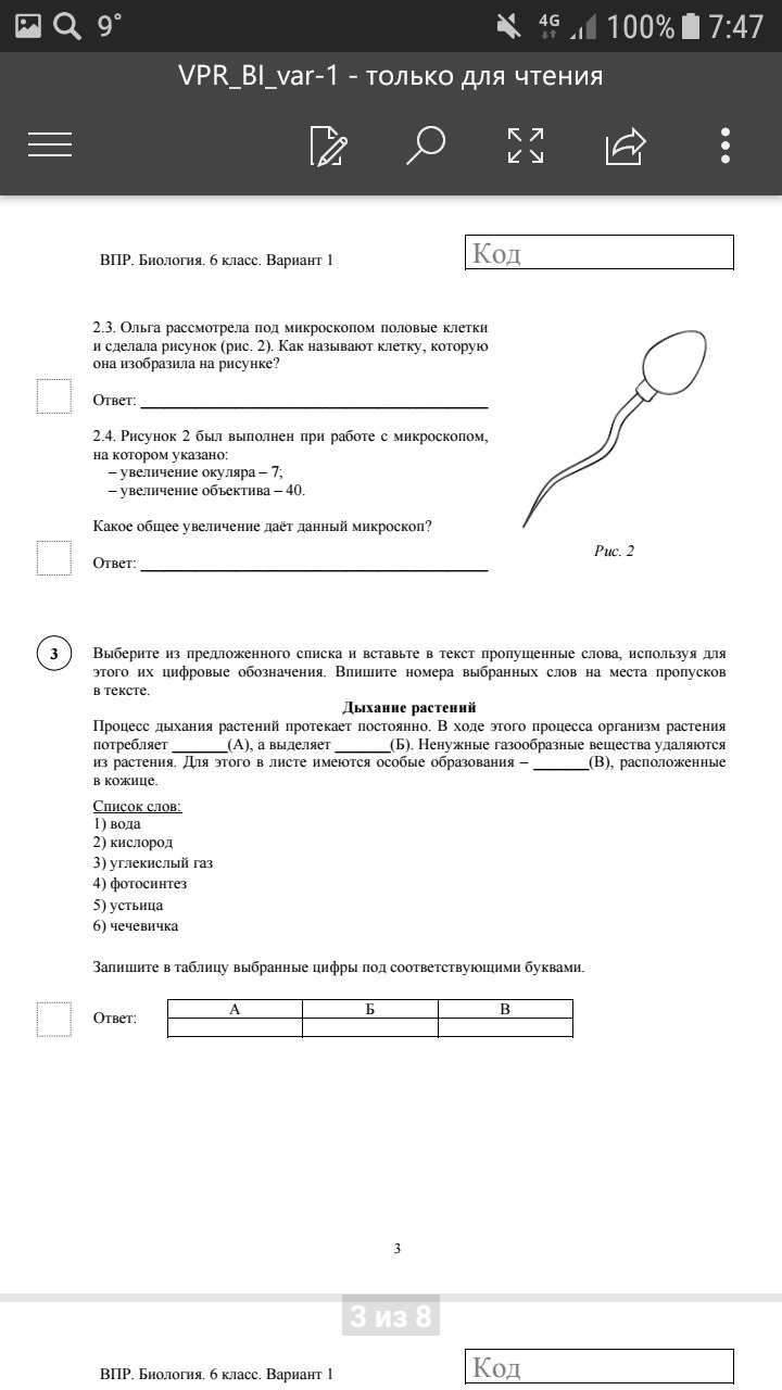 1 вариант биология