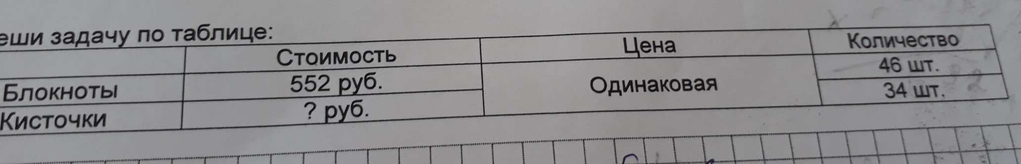 1.552:46=12 рублей стоит 1 блокнот и также 12 рублей стоит 1 кисточка