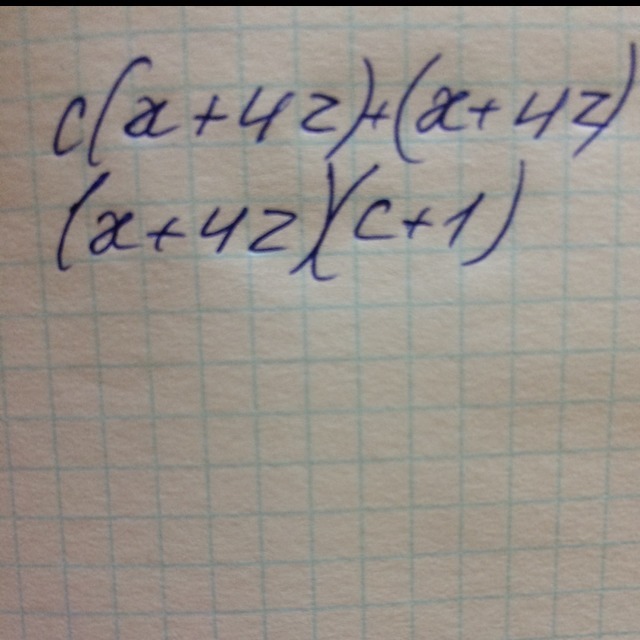 Заключите два последних слагаемых в скобки и затем вынесите общий множитель за скобки : c(x+4z)+x+4z