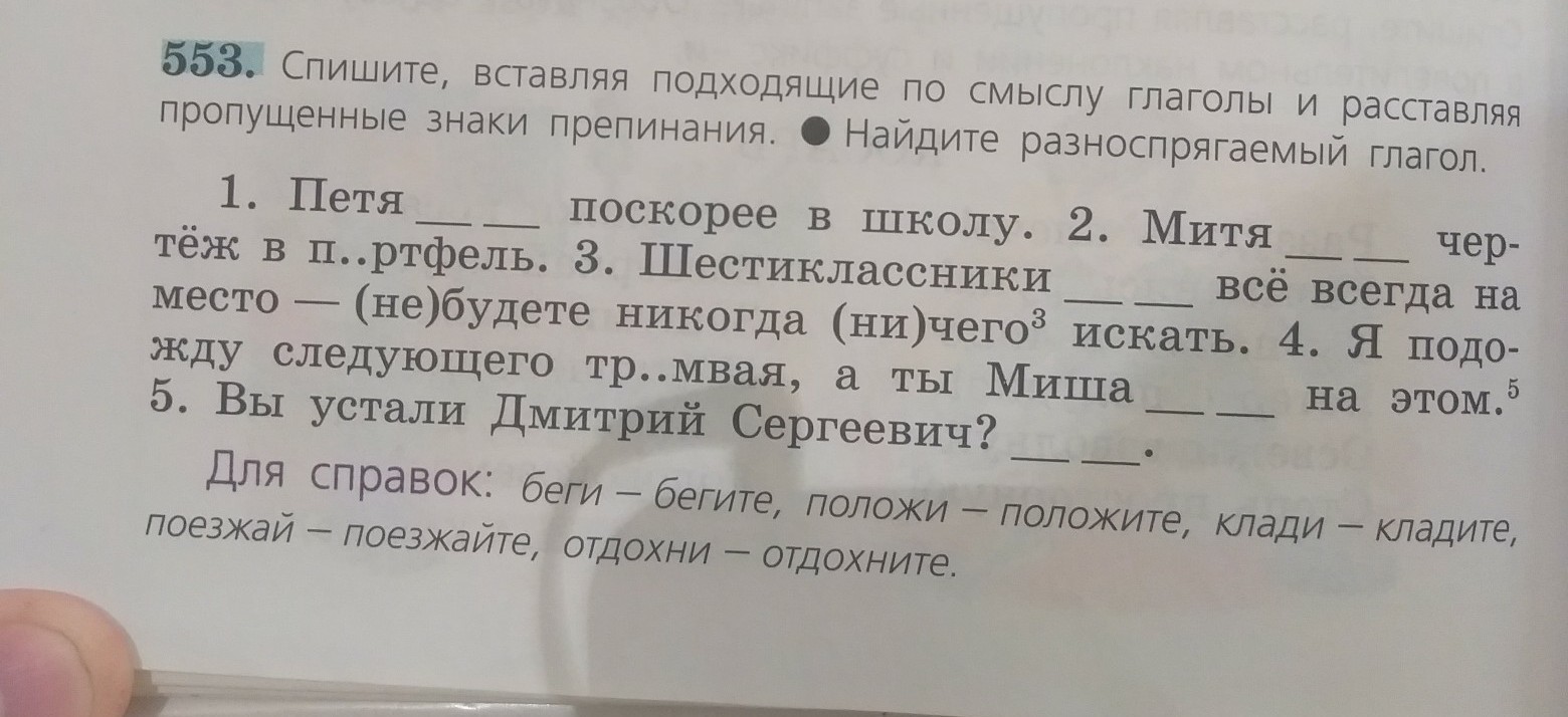 спишите, вставляя подходящие по смыслу глаголы и расставляя пропущенные знаки препинания. найдите разноспрягаемый глагол