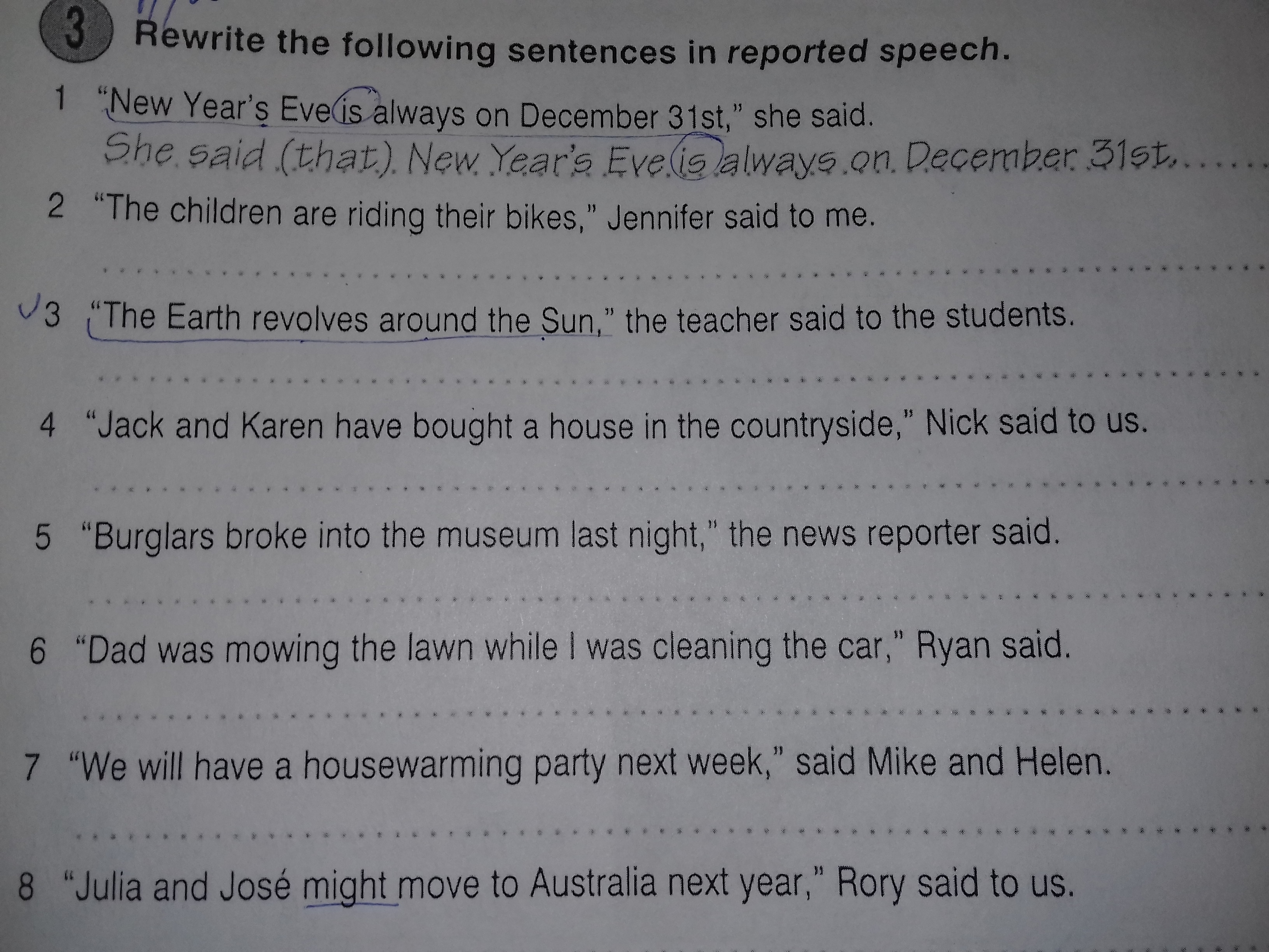 6. ... that dad had been mowing the lawn while he had been cleaning the car.