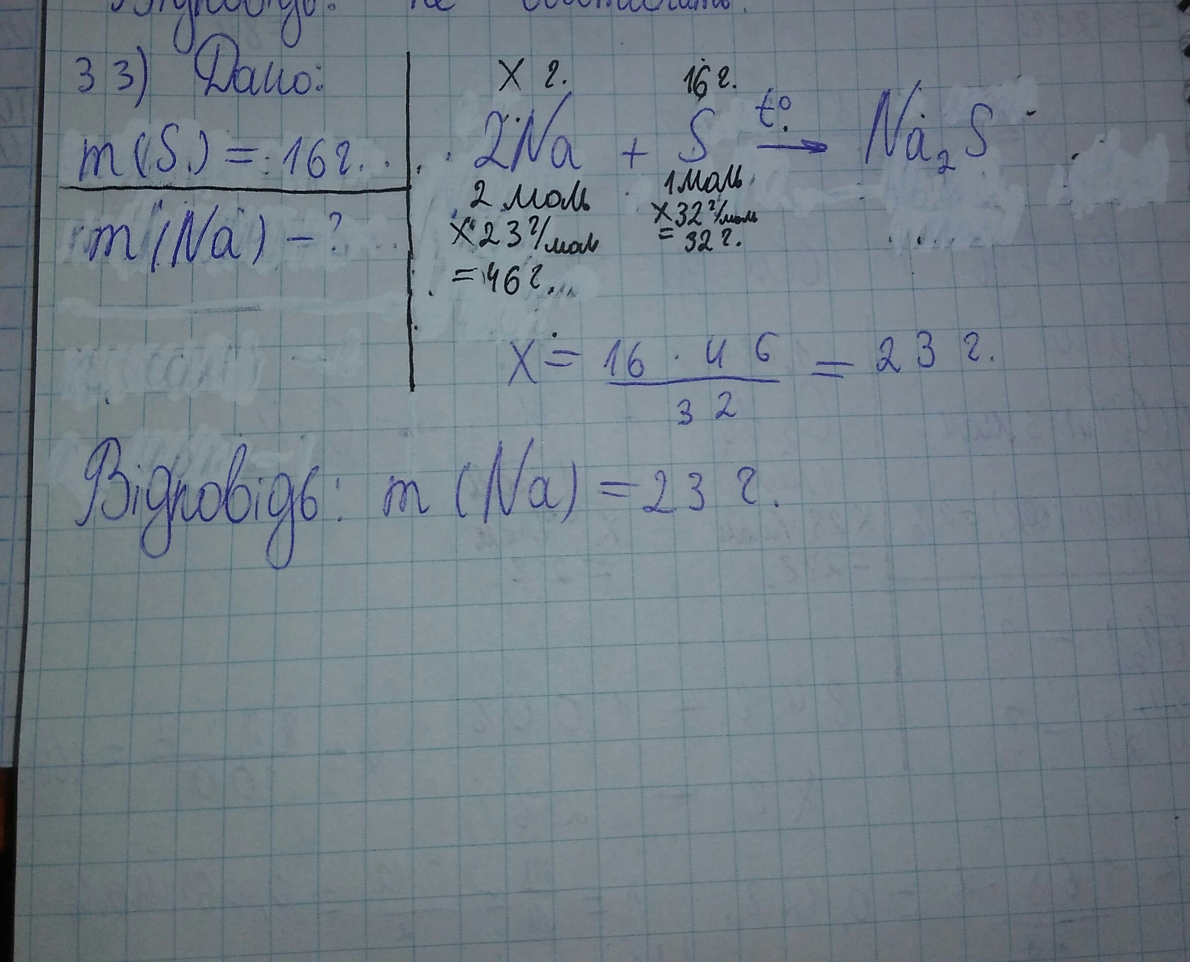 Задача. Какая масса натрия потребуется для реакции взаимодействия с 16г серы?