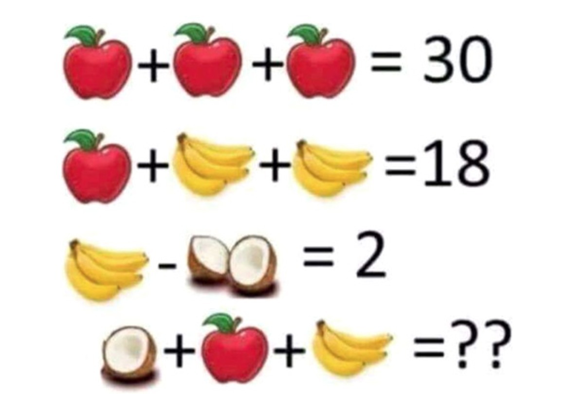 16потомушто яблоко это 10 бананы 4 а кокос 2