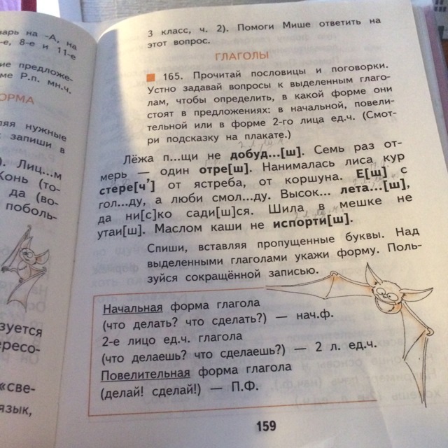 лежа пищи не добудешь 2 лицо ед.ч. семь раз отмерь- один раз отрежь п ф. нанималась лиса кур стеречь нач.ф. от ястреба, от коршуна. ешь 2лицо ед.ч. с голоду ,а люби смолоду.высоко летаешь 2лицо ед.ч. дак низко садишся.шила в мешке не утаишь.маслом каши не испортишь 2лицо ед.ч.