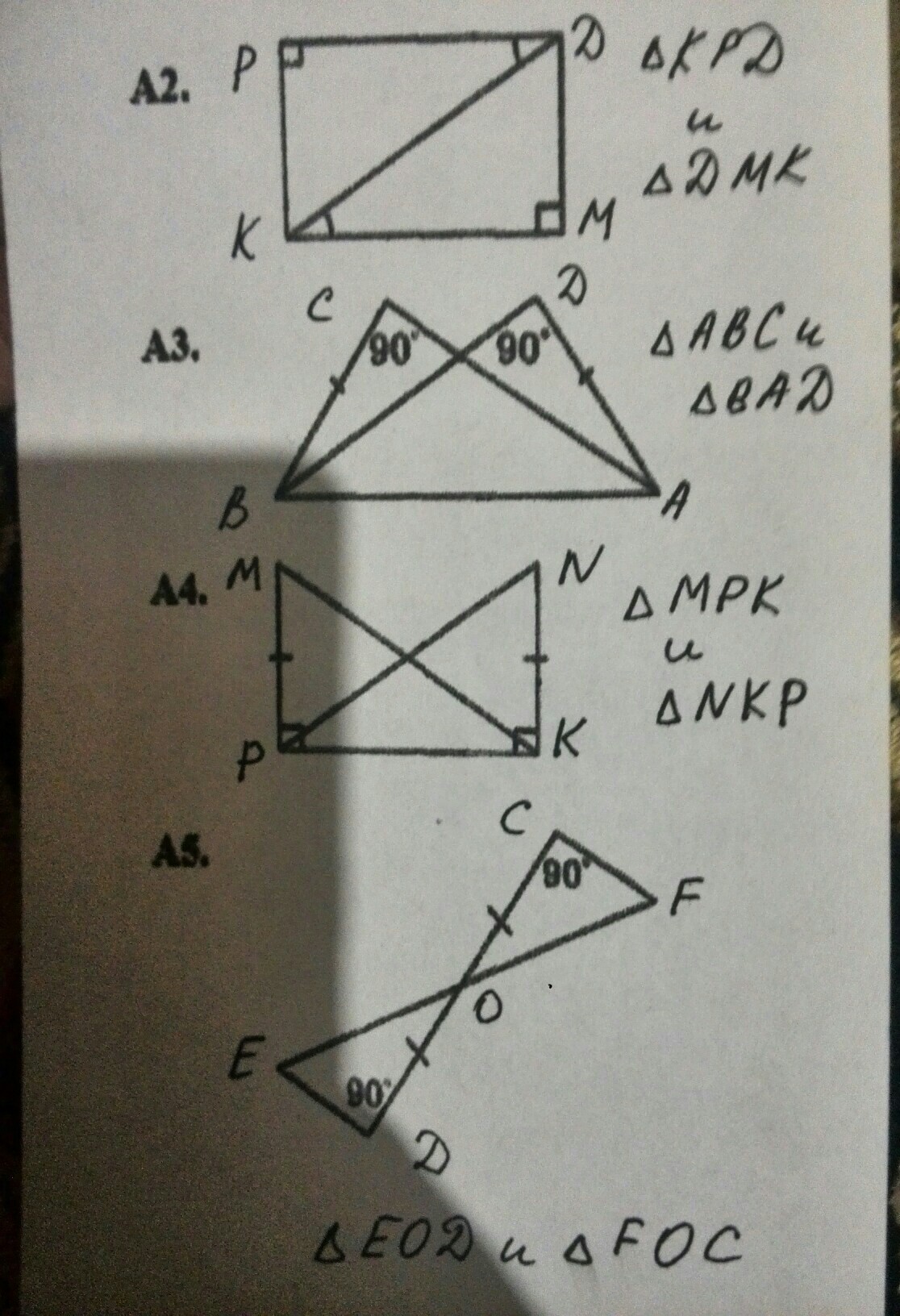 ПОЖАЛУЙСТА ПОМОГИТЕ. Докажите равенство прямоугольных треугольников, изображенных на рисунке