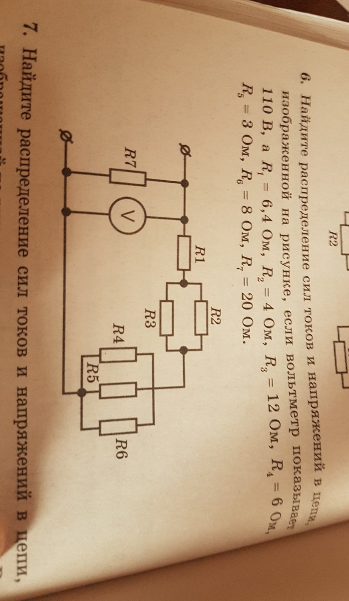 Ток в цепи без участия R7: I=U/Ro=110в/11ом=10а