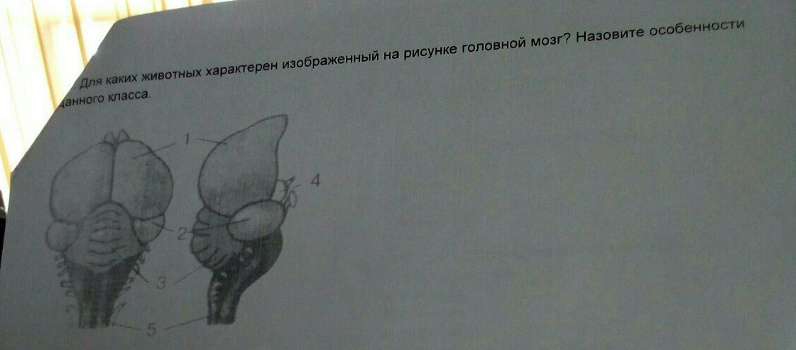 Это головной мозг птицы. По сравнению с пресмыкающимися, их мозг гораздо больше, что обуславливает гораздо больше вариаций их поведения. Передние доли мозга достаточно развита и они прикрывают собой все остальные части мозга за исключением мозжечка. Увеличение мозга идет за счет дна, где были расположены крупные полосатые тела. Также практически отсутствуют обонятельные доли, таким образом слабо развито обоняние. Мозжечок становится крупнее, усложняется его строение. Все это в основном связано с полетом.