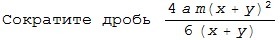 Там (х+у) сокращается, 4 и 6 сокращается на 2, а потом в числителе раскрываются скобки.