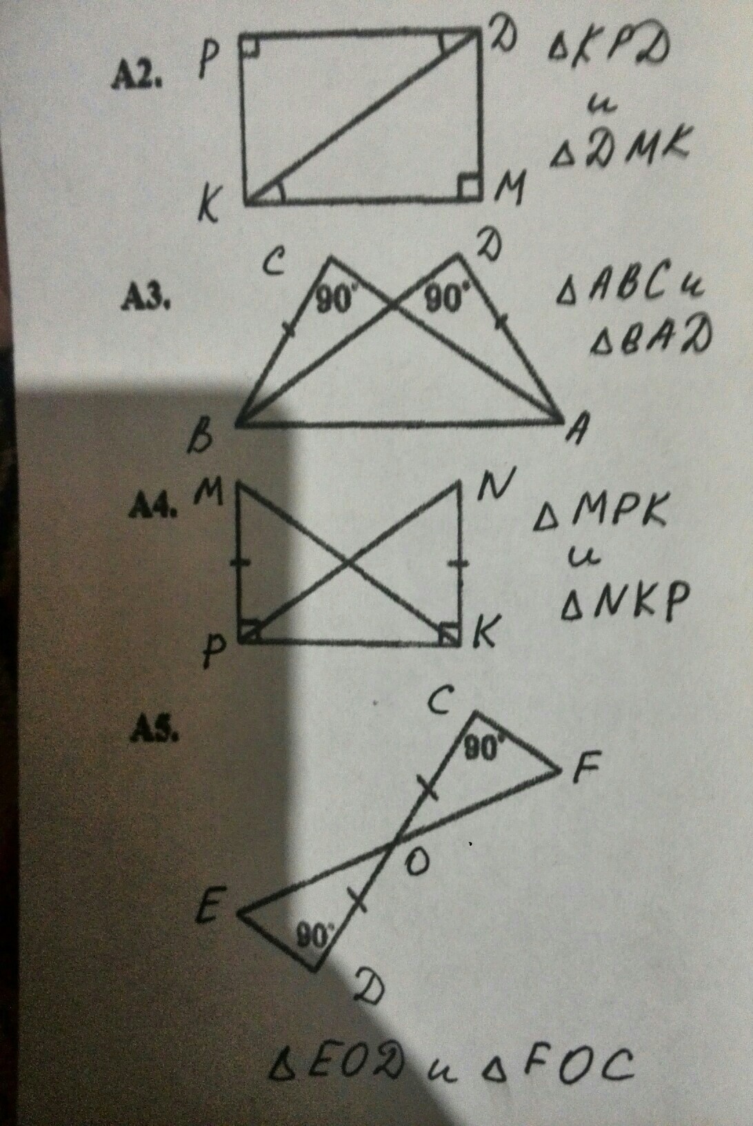 А2. Спільна гіпотенуза КД і рівні гострі кути РДК =ДКМ