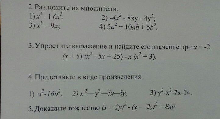 2. 1) x⁴-16x²= x²(x²-16)=x²·(x-4)·(x+4)