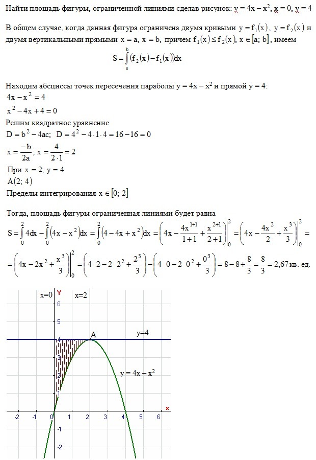 Найти площадь фигуры, ограниченной линиями сделав рисунок: