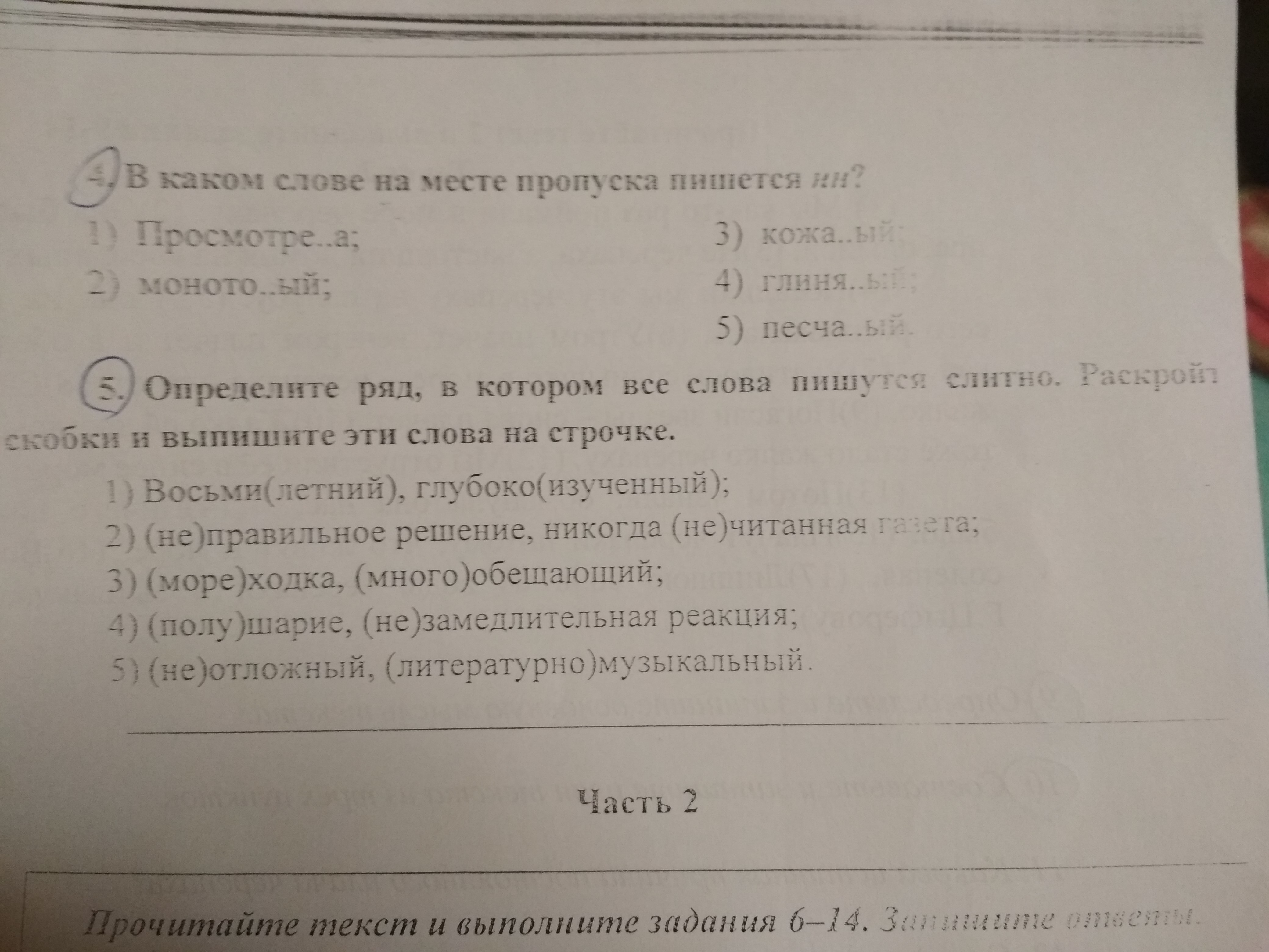 5.Определите ряд, в котором все слова пишутся слитно. Раскройте скобки и выпишите эти слова на строчке.