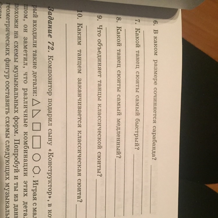 4. В сюиту вошли четыре разнохарактерных танца: аллеманда, куранта, сарабанда и жига. Танцы эти соединялись по принципу контраста между медленными, плавными и живыми-прыжковыми. Со временем они стали дополняться другими - изящным церемонным менуэтом, жеманным небыстрым гавотом, шутливым бурре или живым, веселым провансальским ригодоном. Иногда появлялись в сюите и нетанцевальные части - прелюдия, ария, каприччио, рондо.