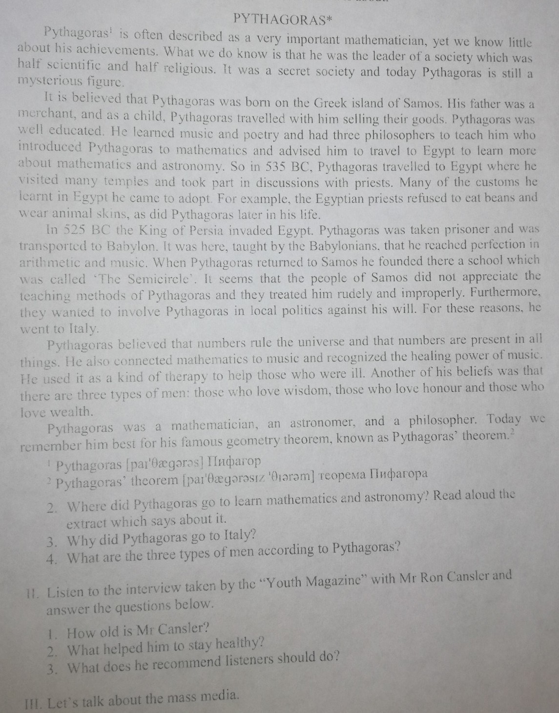2. Куда Пифагор отправился изучать математику и астрономию? Прочитайте вслух выдержку, которая говорит об этом.