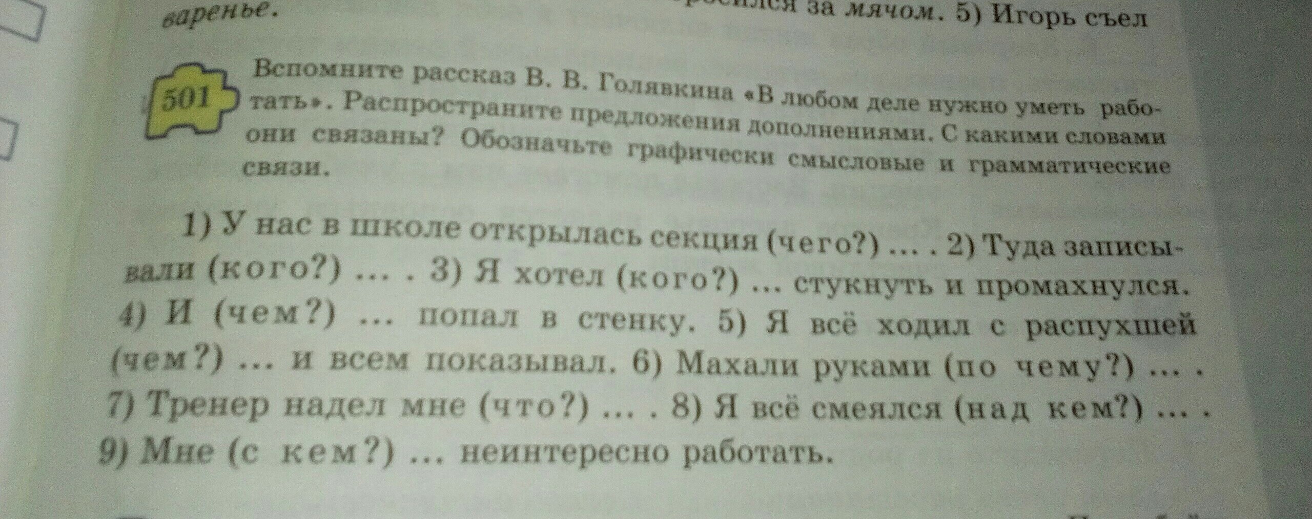 1)У нас в школе открылась секция метания . 2)Туда записывали моих однаклассников и друзей.3)Я хотел кого стукнуть и промахнулся( пишешь кого именно).СДЕЛАЛА ЧТО СМОГЛА.