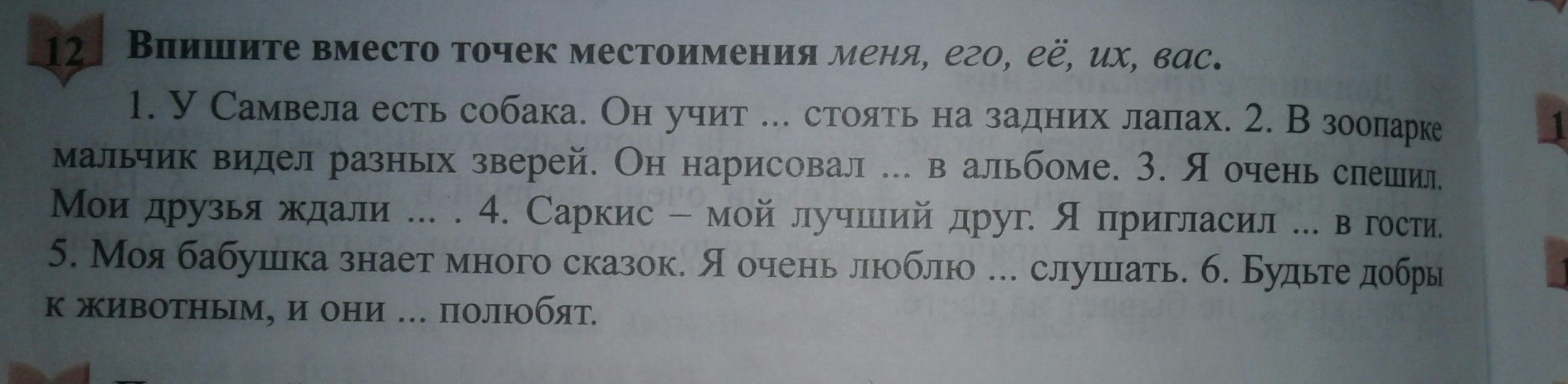 1) её 2)их 3)меня 4) его 5)их 6)вас