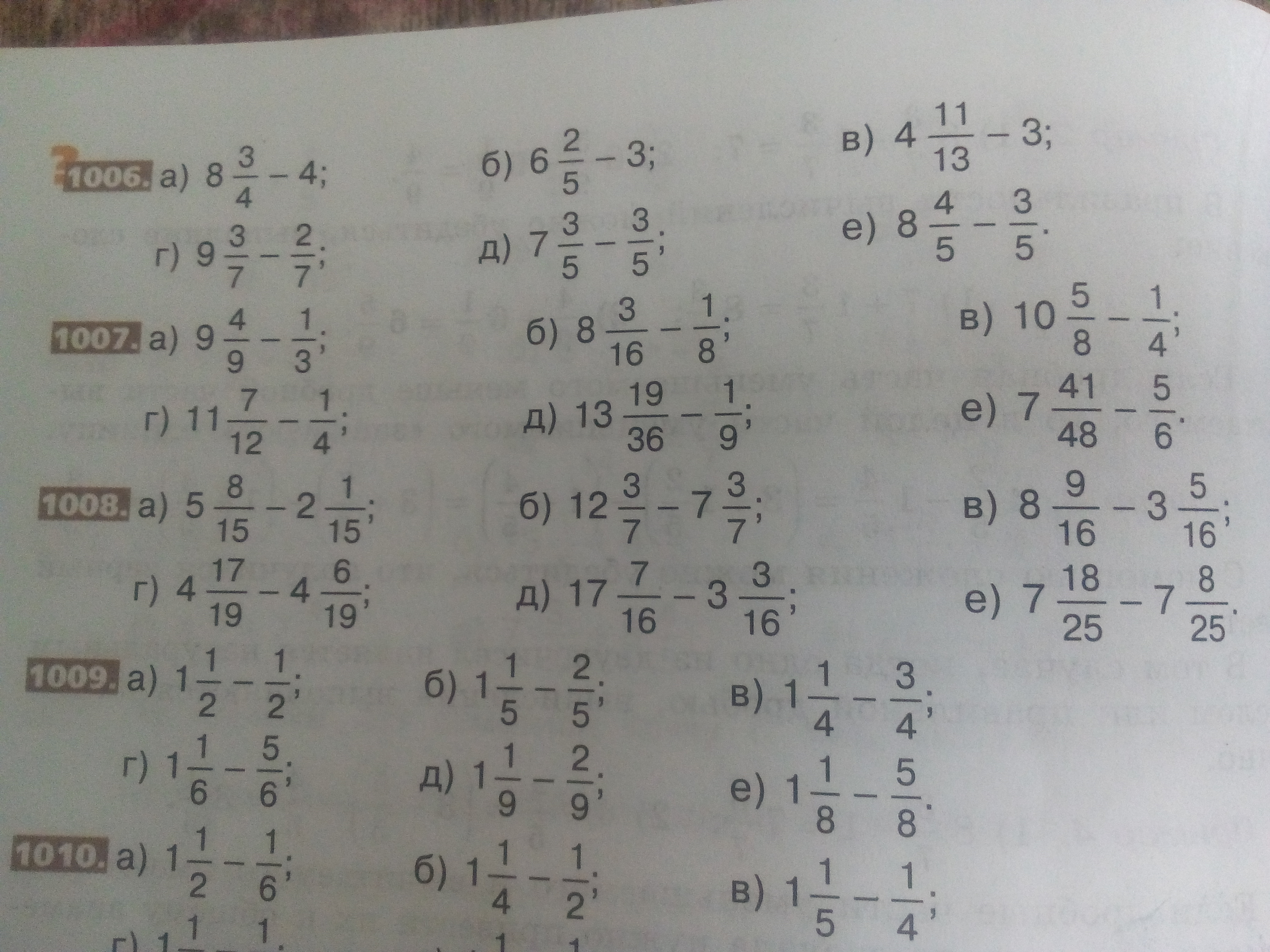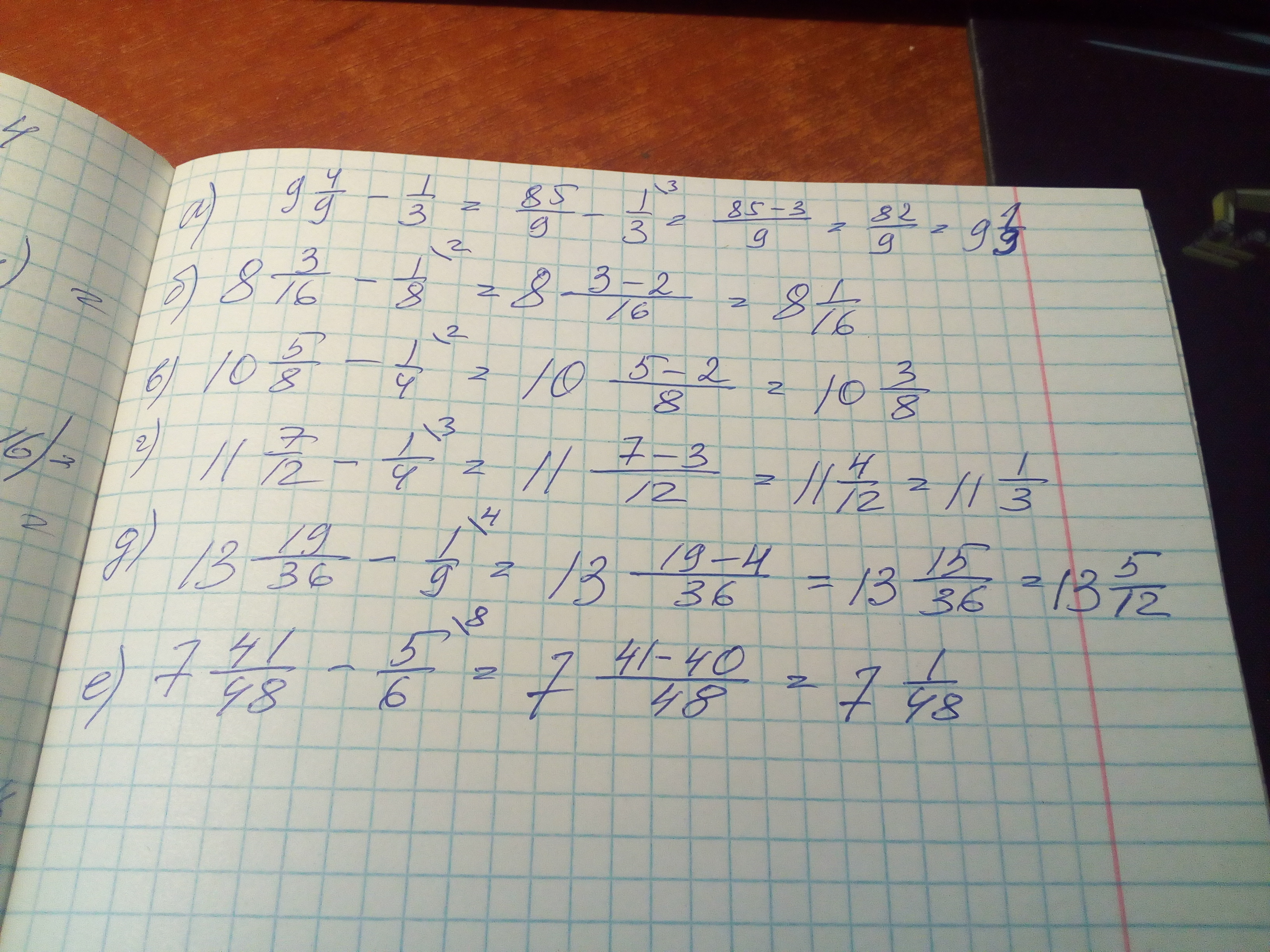 а)9 целых одна девятая б) 8 целых одна шестнадцатая в) 10 целых три восьмых г) 4 целых одна третья д) 13 целых пять двенадцатых е) 7 целых одна сорок восьмая