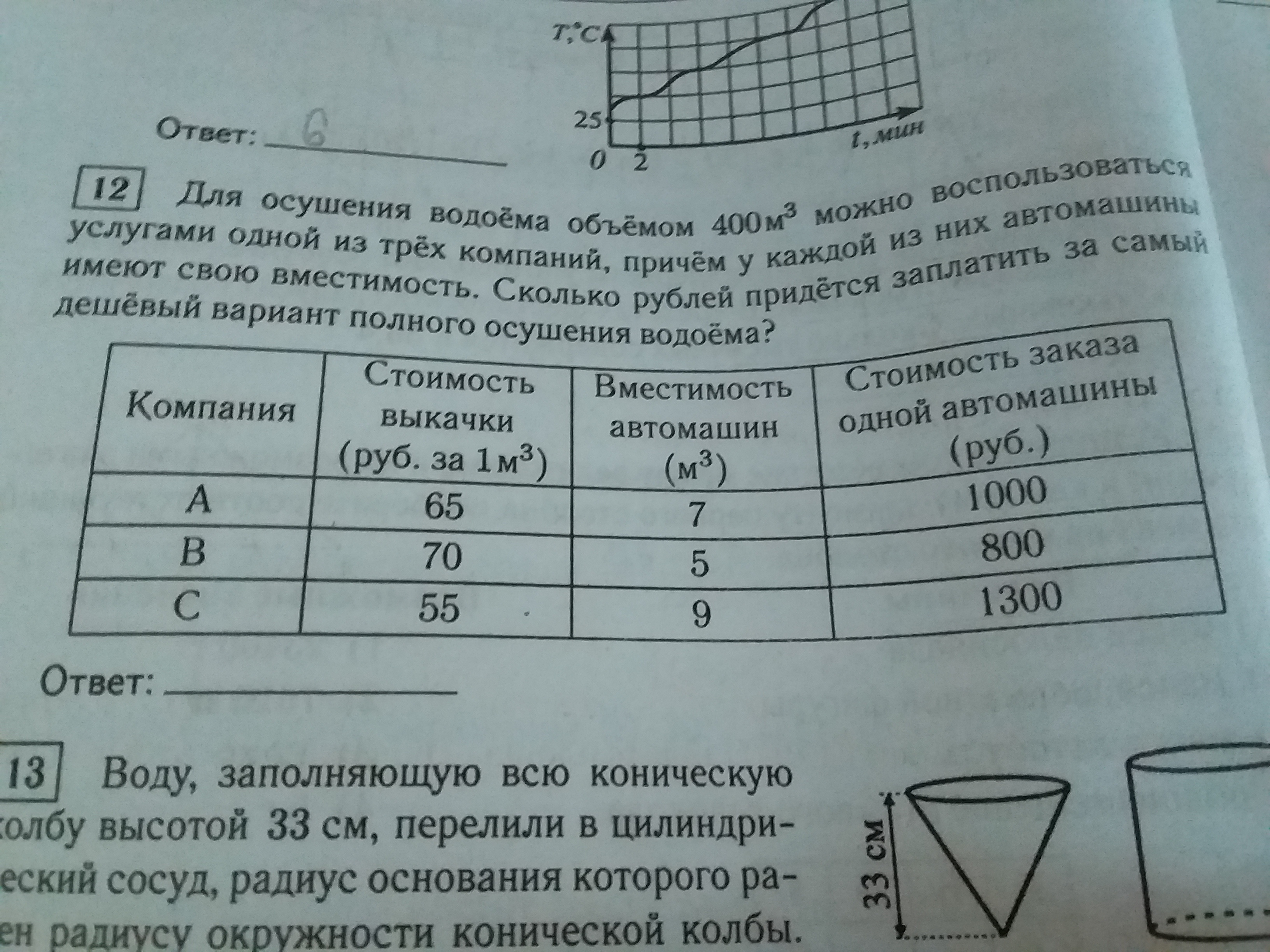 Ответ: За самый дешевый вариант полного осушения водоема (компания C) придется заплатить 80500.
