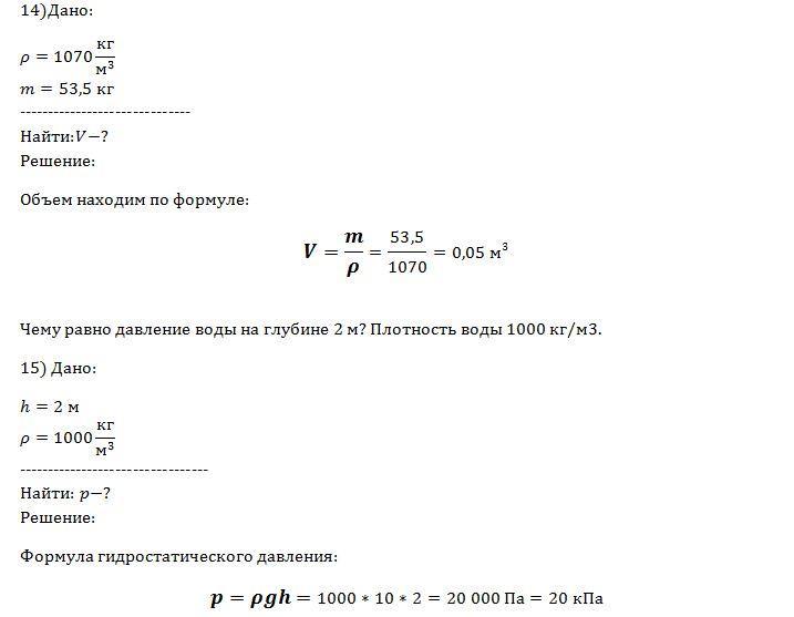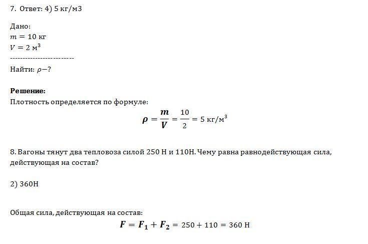 7. Плотность тела массой 10кг и объёмом 2 м3 равна
