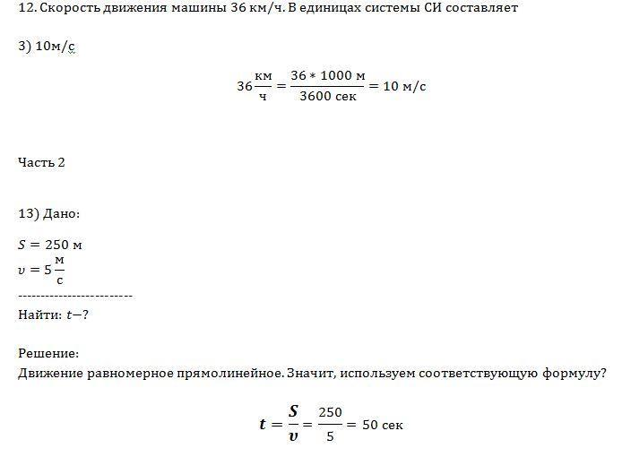 12. Скорость движения машины 36 км/ч. В единицах системы СИ составляет