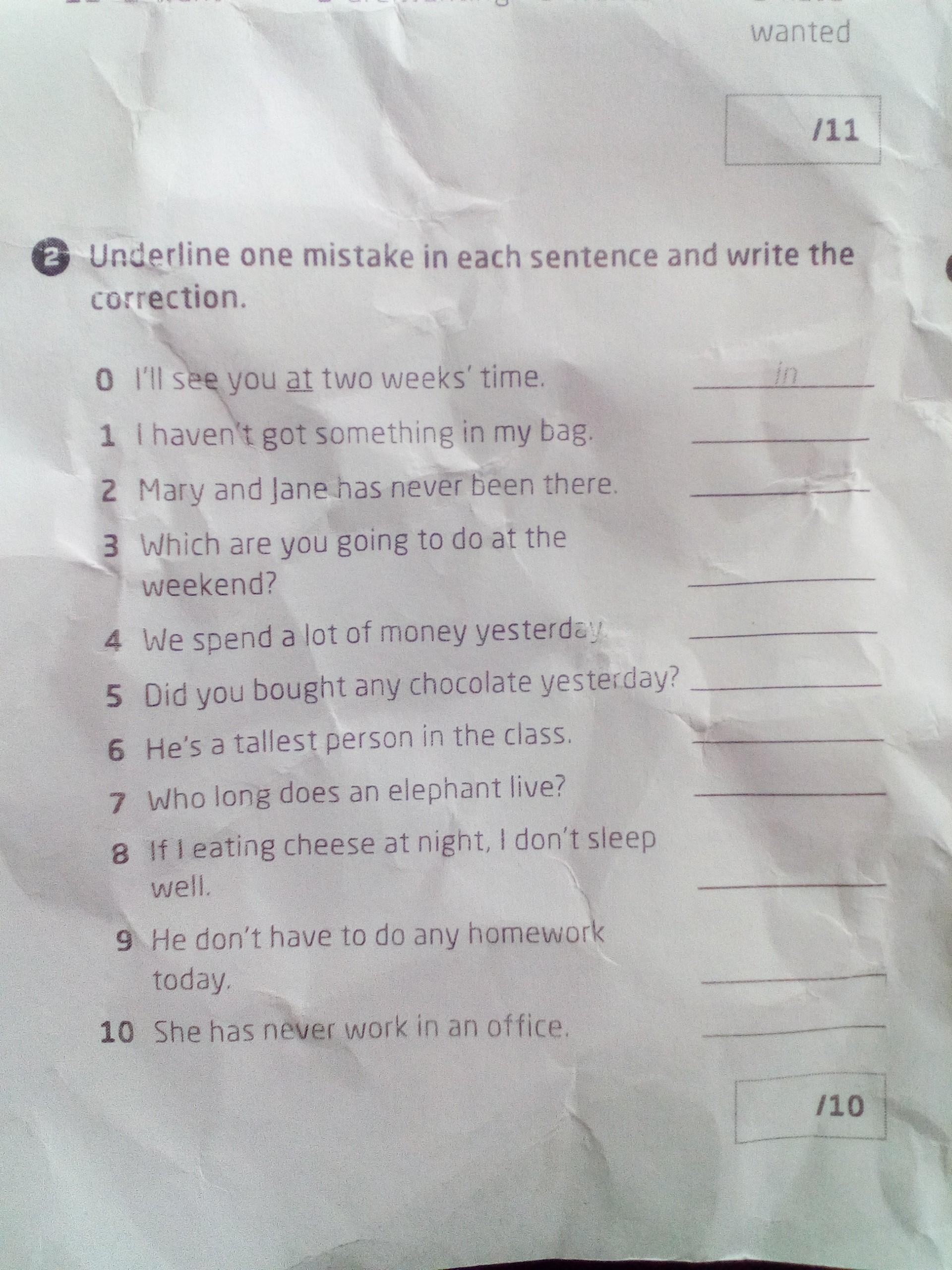 9. Подчеркнуть don't, написать doesn't.