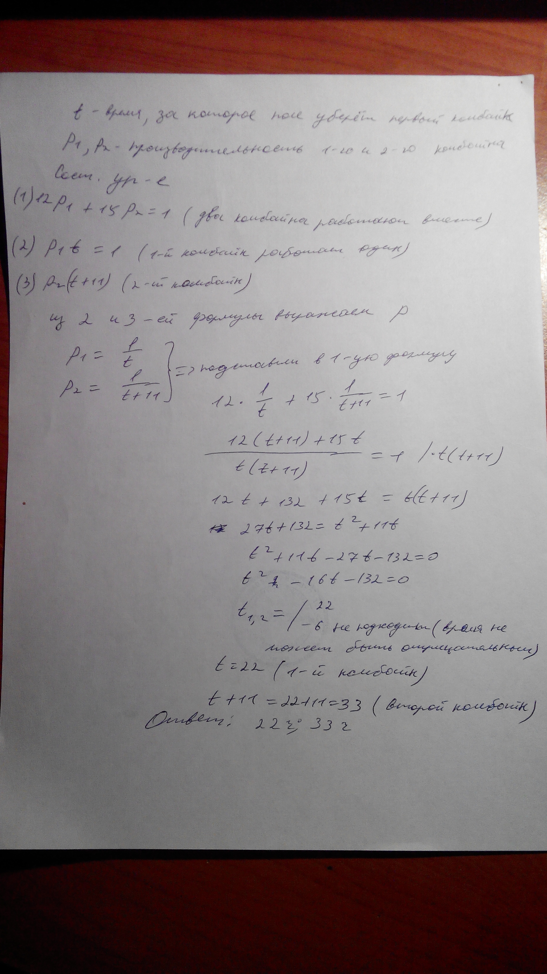Поле было убрано двумя комбайнами, при этом первый из них работал 12ч, а