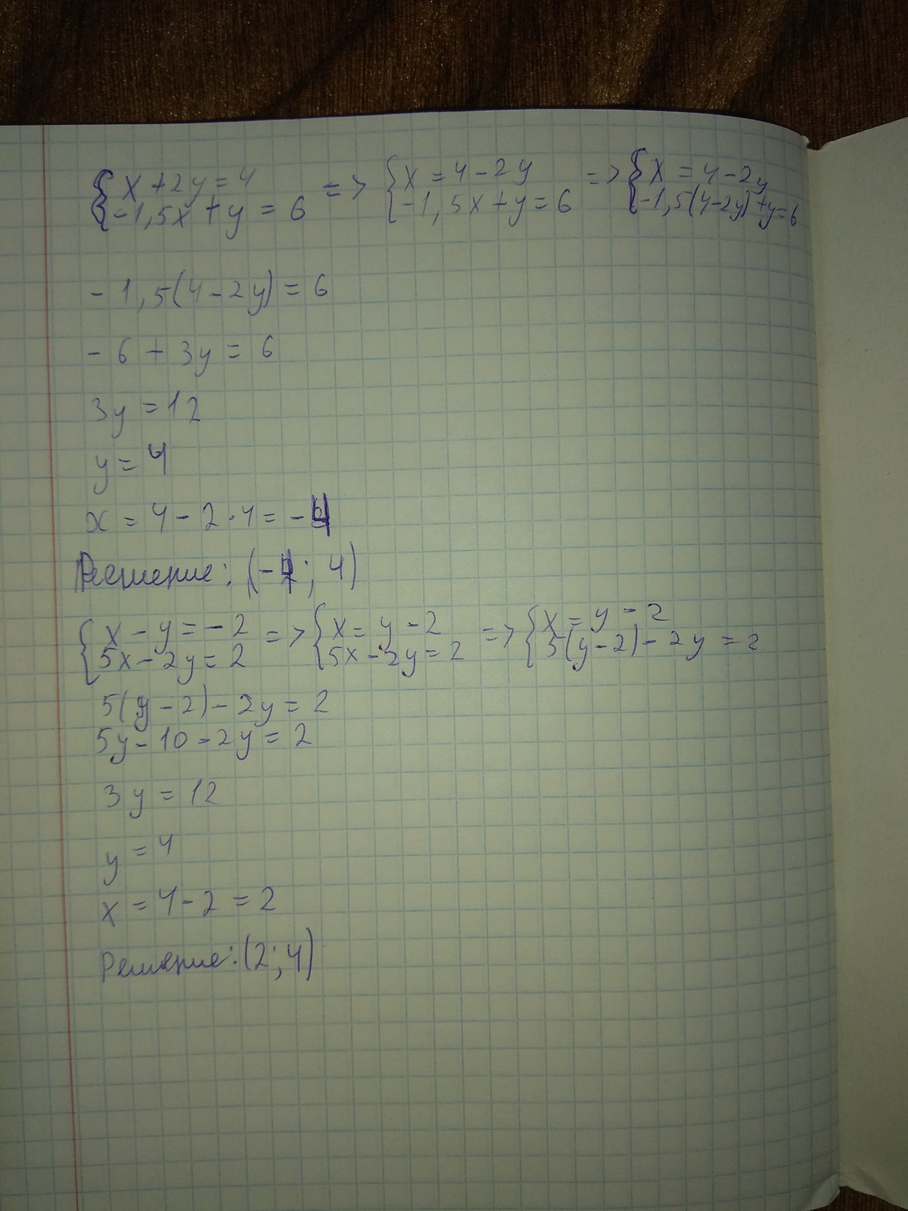 {X=4-2y -> {-1.5(4-2y)+y=6 {-6+3y+y=6 {4y=12 {y=4