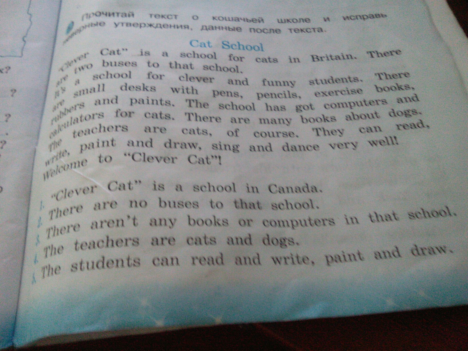 прочитай текст текст о кошачьей школе и исправить неверные утверждения, данные после текста .