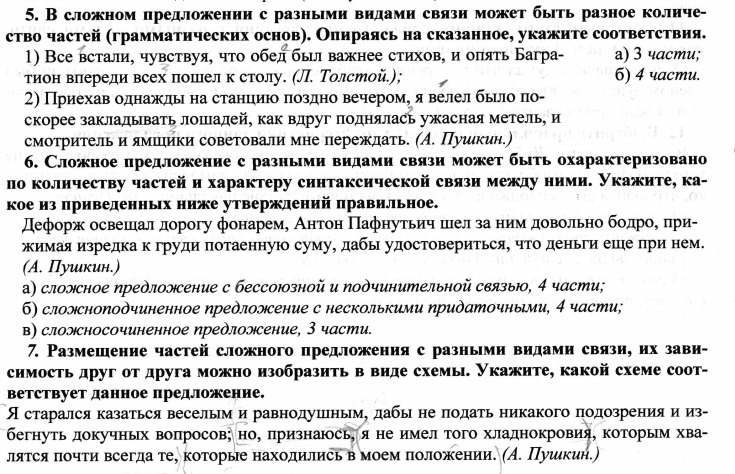 5. 1) 3 части ( все встали; обед важнее; Багратион пошел)