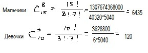 В классе учатся 15 мальчиков и 10 девочек.Для уборки территории требуется выделить 8 мальчиков и 3 девочки.Сколькими способами это можно сделать?