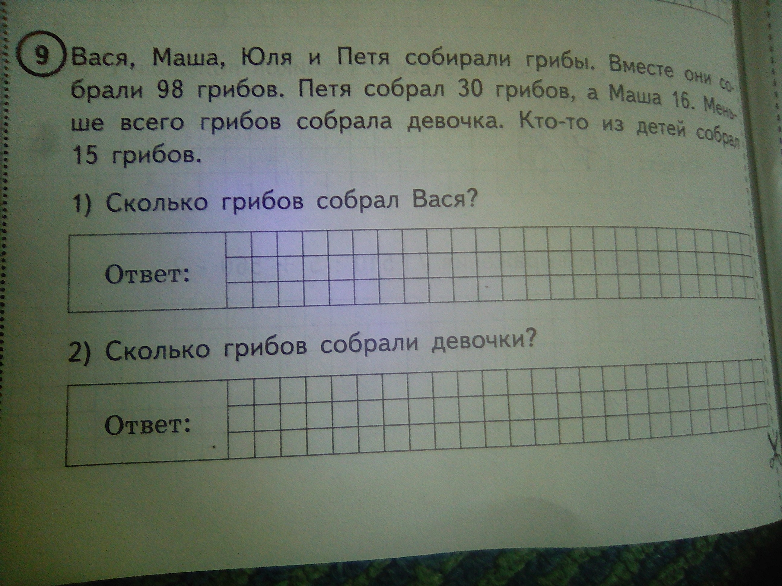 вася маша юлии печи собирали грибы вместе они собрали 98 грибов.