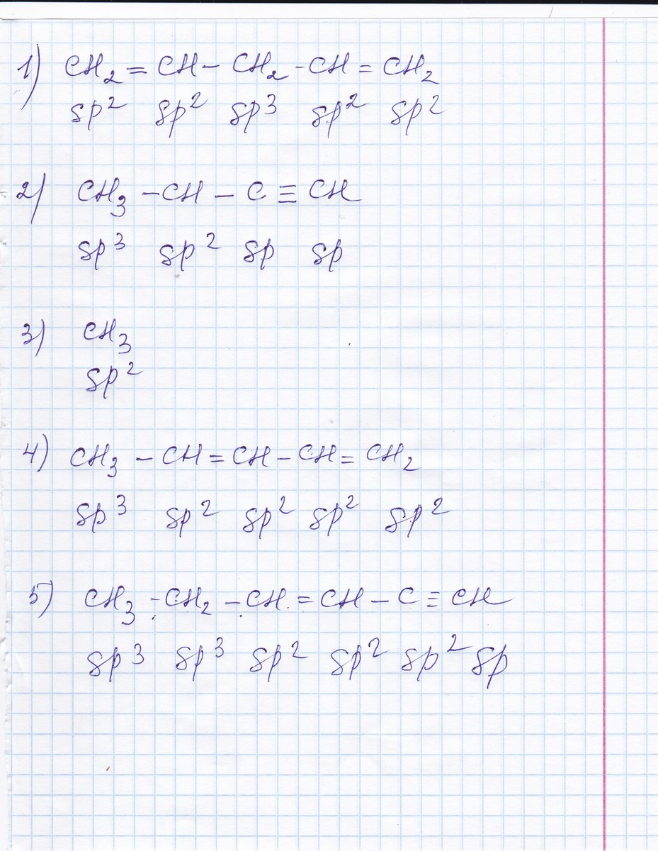 гибридизации всех атомов углерода в молекулах