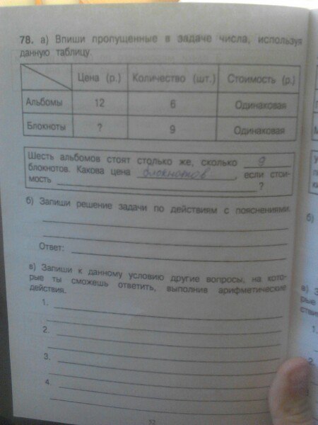 4. Сколько будут стоить 9 блокнотов, если цена увеличится на 3 рубля?