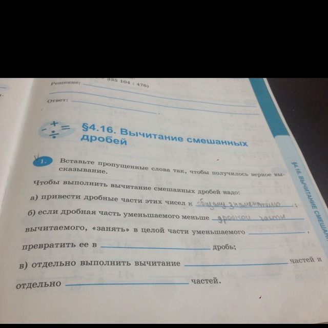 б) 2. целую часть 3. обыкновенную или смешанную (зависит от дроби)