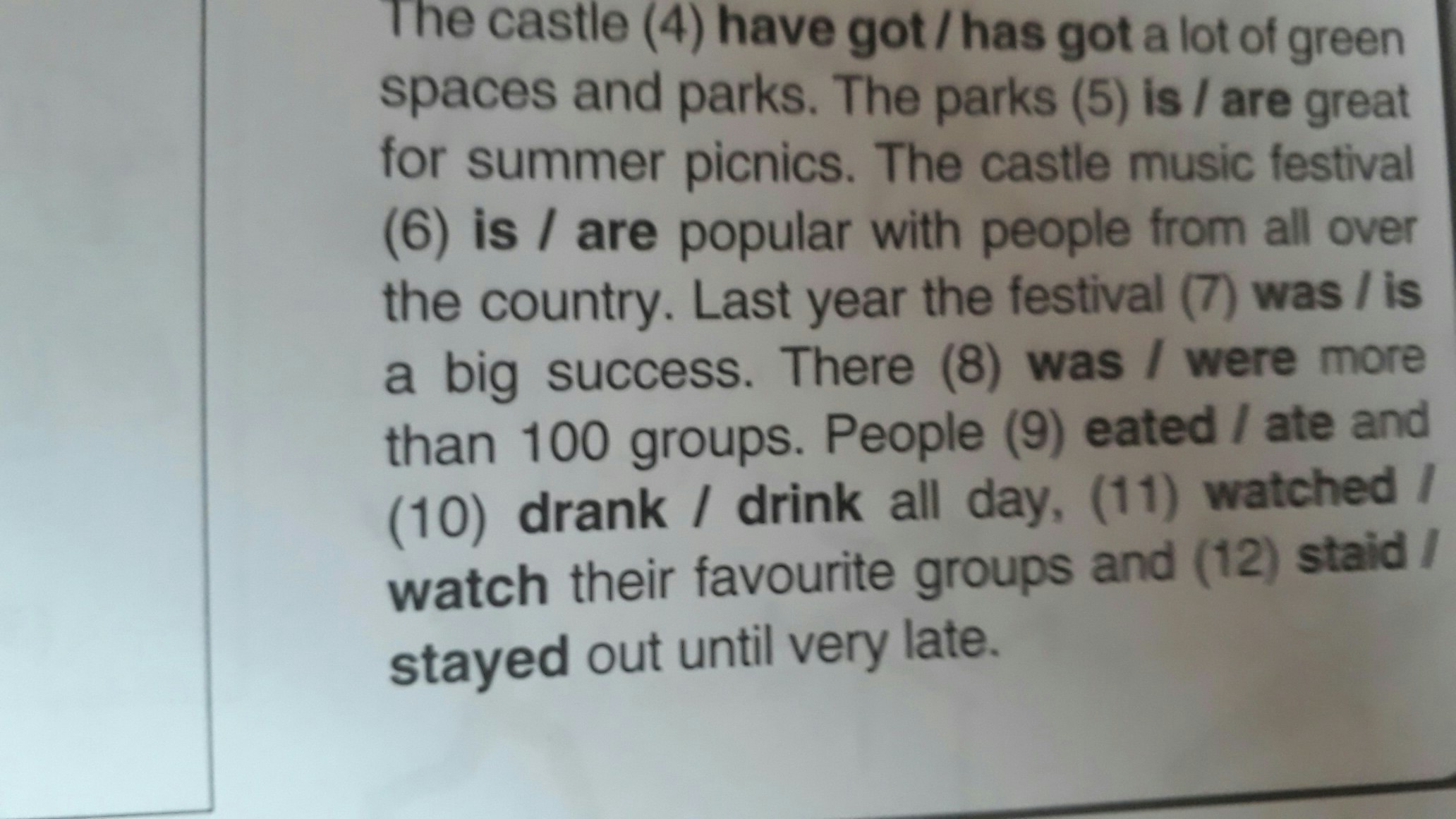4) has got 5) are 6) is 7) was 8) were 9) ate 10) drank 11) watched 12) stayed