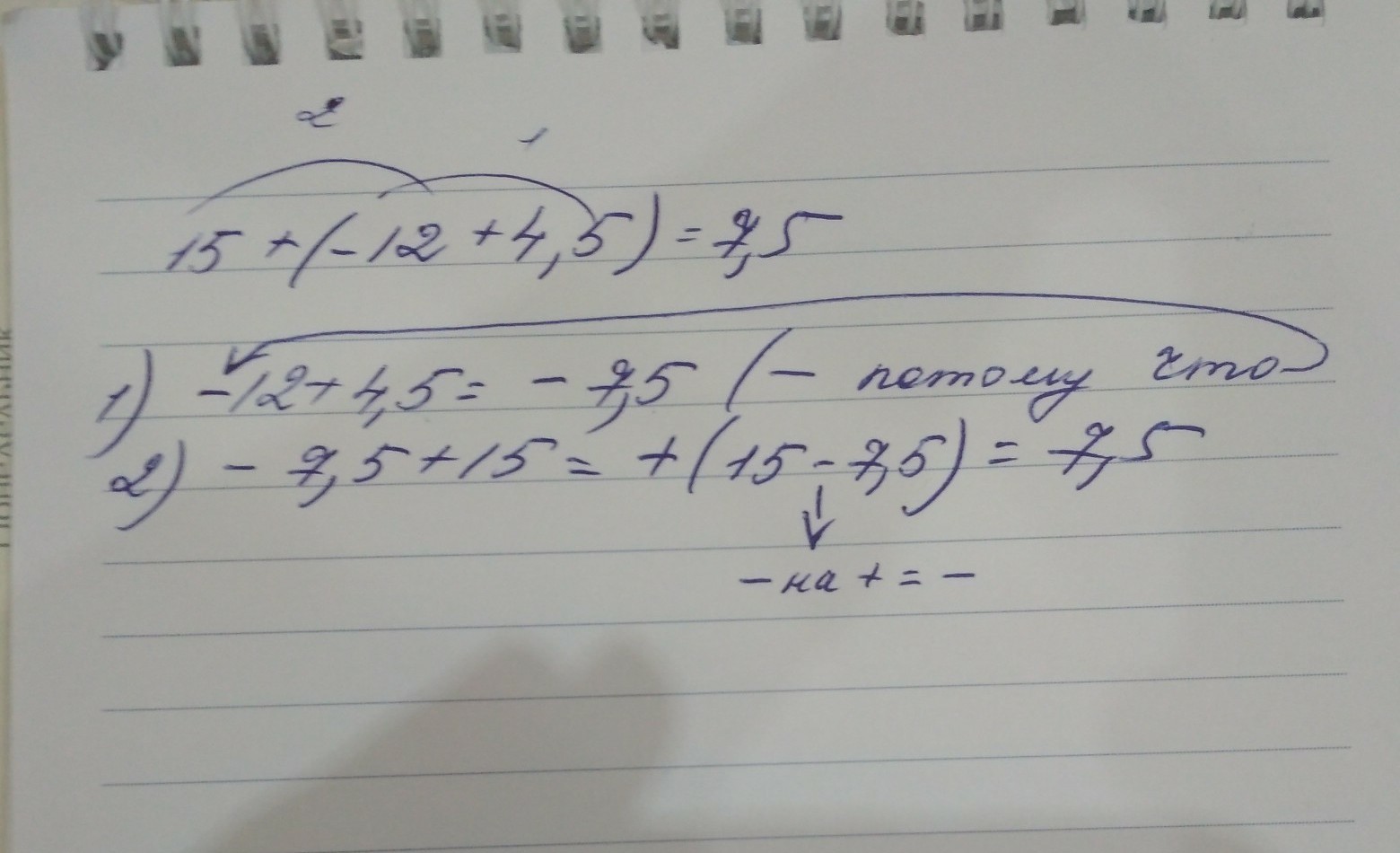 15+(-12+4,5)=15-12+4,5=19,5-12=7,5