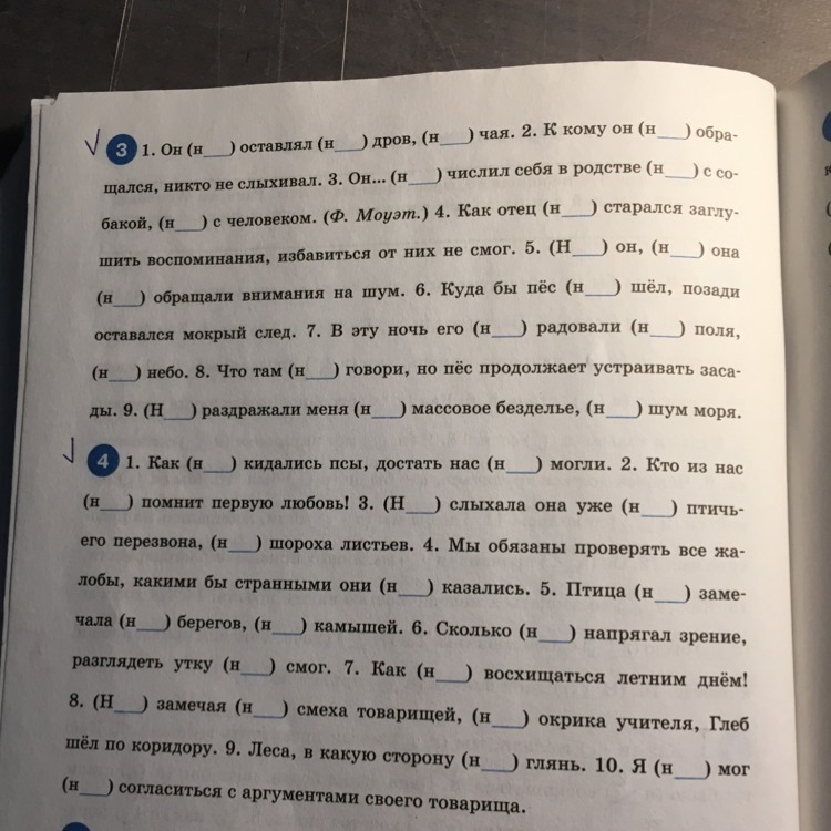 #3. Он не оставлял ни дров, ни чая. 2. К кому он ни обращался, никто не слыхивал. 3. Он... не числил себя в родстве ни с собакой, ни с человеком. 4. Как отец ни старался заглушить воспоминания, избавиться от них не смог. 5. Ни он, ни она не обращали внимания на шум. 6. Куда бы пёс ни шел, позади оставался мокрый след. 7. В эту ночь его не радовали ни поля, ни небо. 8. Что там ни говори, но пёс продолжает устраивать засады. 9. Не раздражали меня, ни массовое безделье, ни шум моря.